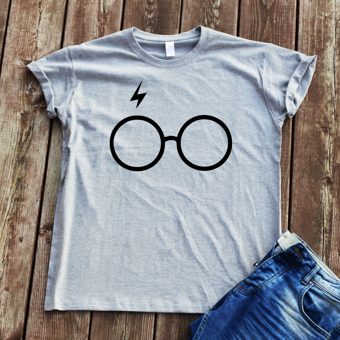 Pilki marškinėliai su spauda "Hario akiniai"