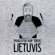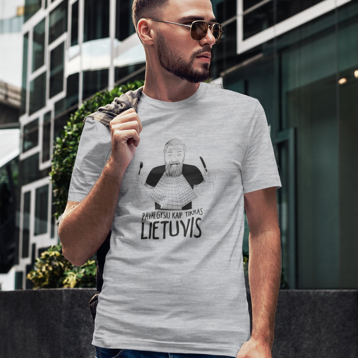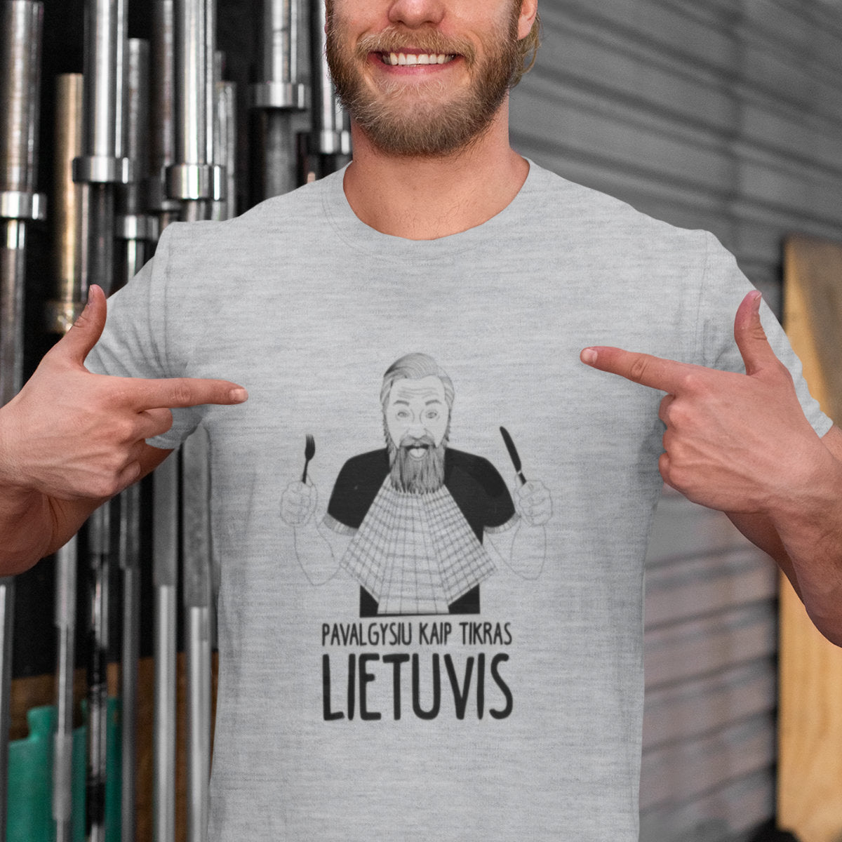 Pilki melanžiniai marškinėliai "Pavalgysiu kaip tikras lietuvis“