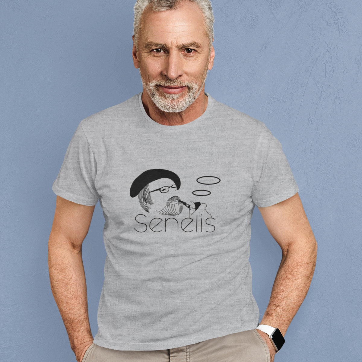 Pilki melanžiniai marškinėliai su užrašu "Senelis su pypke"
