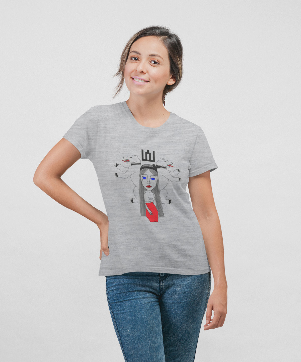 Pilki melanžiniai moteriški marškinėliai "LDK KUNIGAIKŠTIENĖ BIRUTĖ"