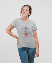 Pilki melanžiniai moteriški marškinėliai "LDK KUNIGAIKŠTIENĖ BIRUTĖ SU UŽRAŠU"