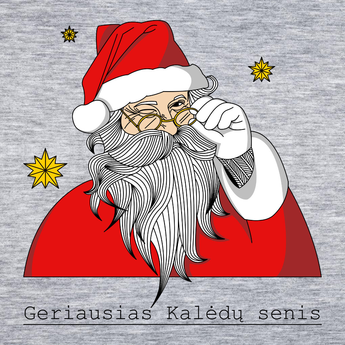 Pilki melanžiniai UNISEX kalėdiniai marškinėliai "Geriausias Kalėdų senis"
