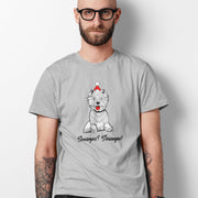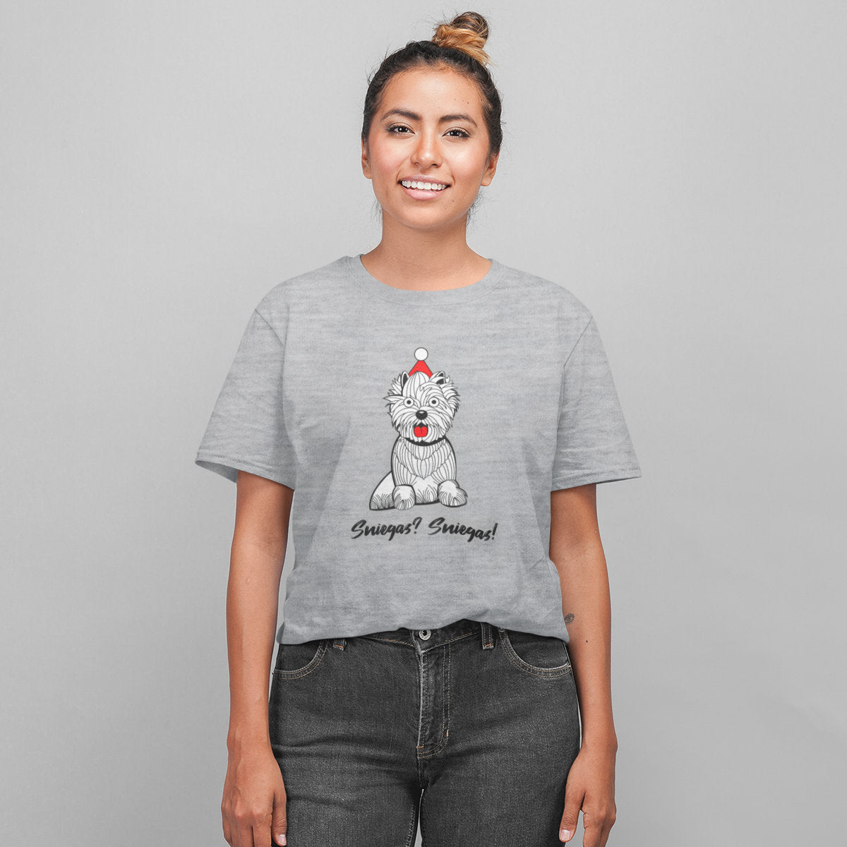 Pilki melanžiniai UNISEX kalėdiniai marškinėliai "Sniegas? Sniegas!"