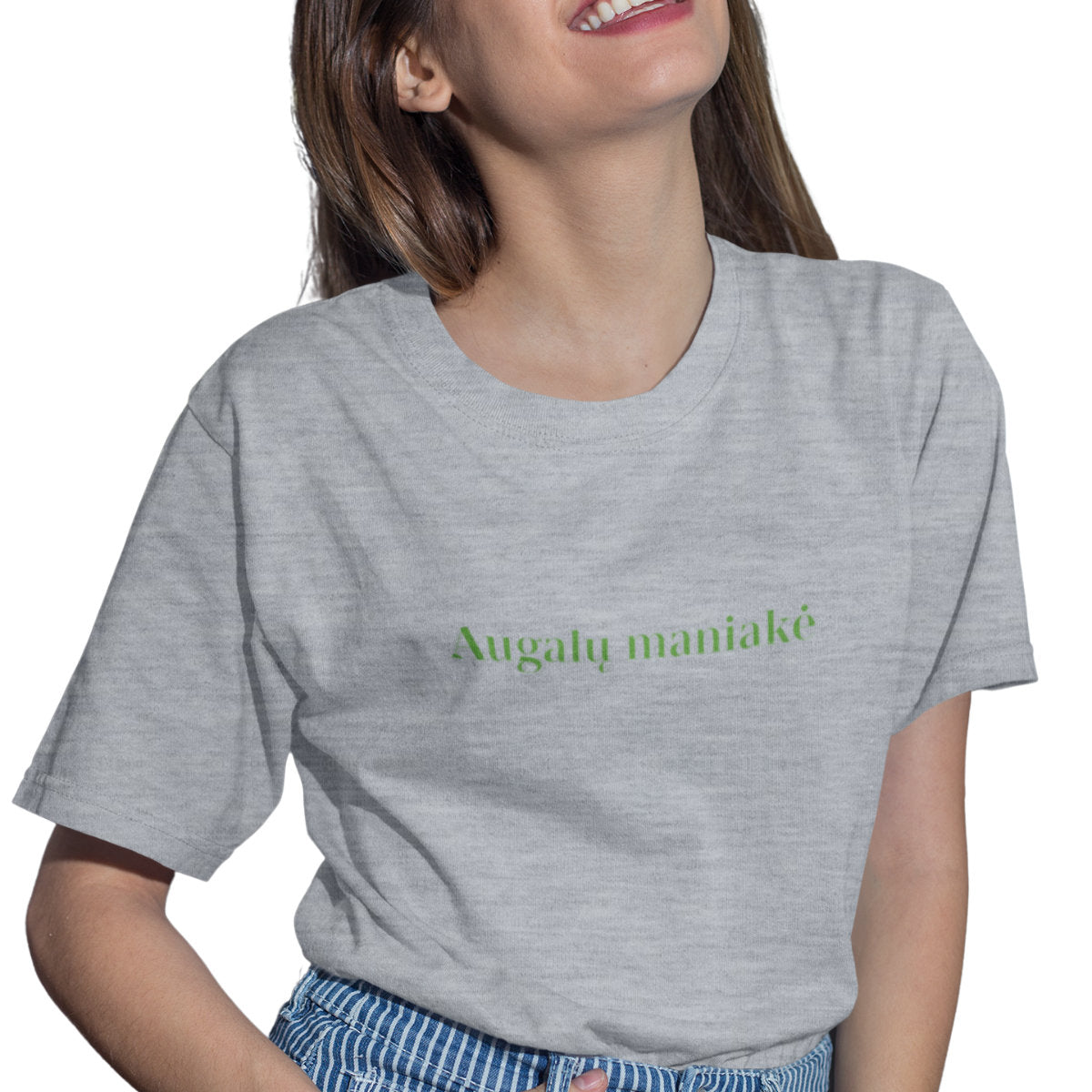 Pilki melanžiniai UNISEX marškinėliai "Augalų maniakė"
