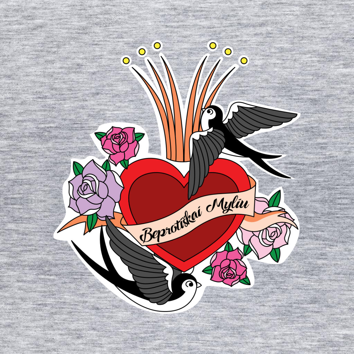 Pilki melanžiniai UNISEX marškinėliai "Beprotiškai myliu"