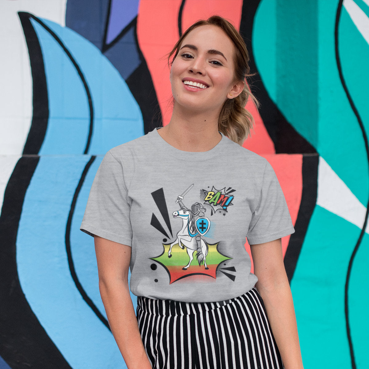 Pilki melanžiniai UNISEX marškinėliai "Comics Vytis"