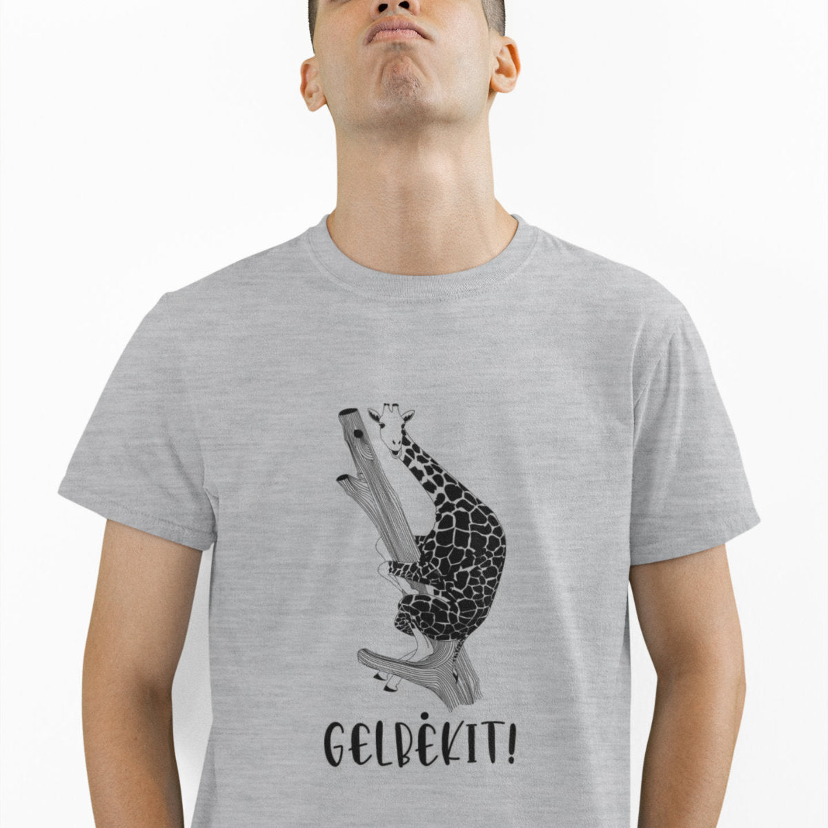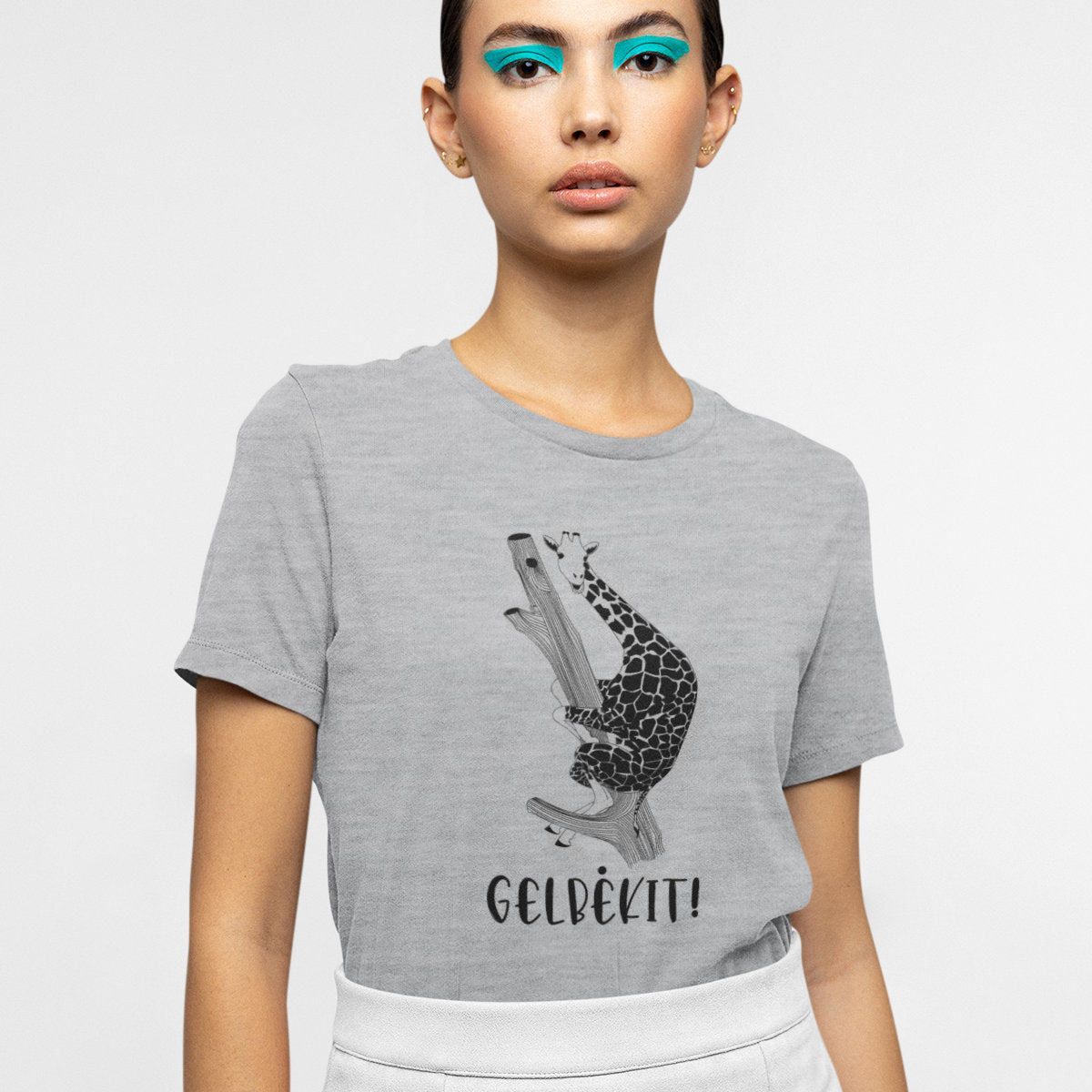 Pilki melanžiniai UNISEX marškinėliai "Gelbėkit žirafą"
