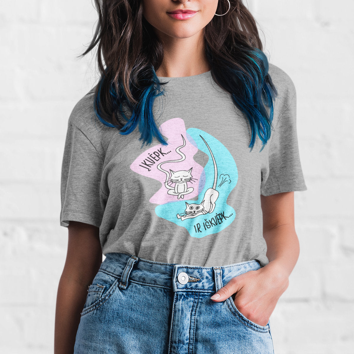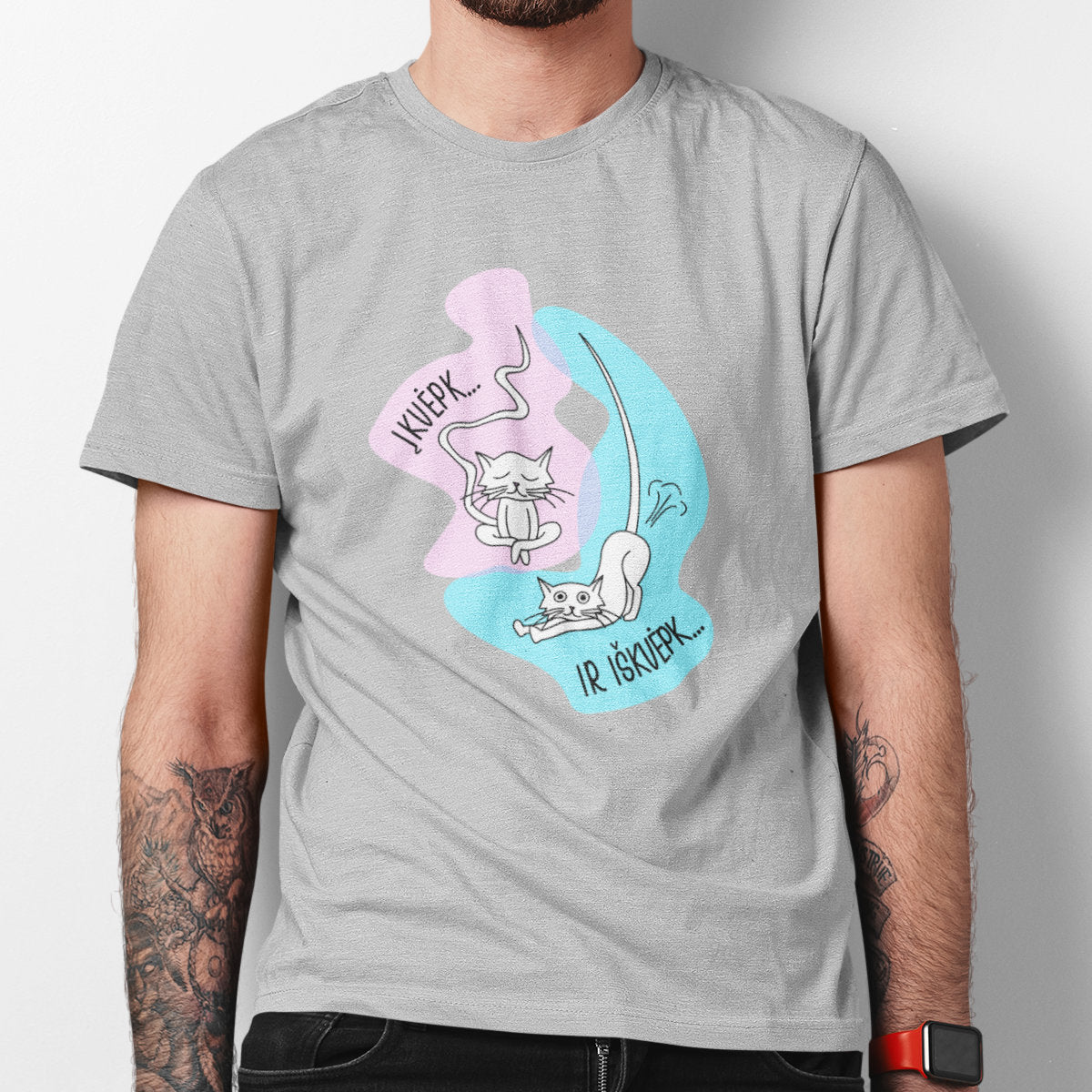 Pilki melanžiniai UNISEX marškinėliai "Įkvėpk ir iškvėpk"