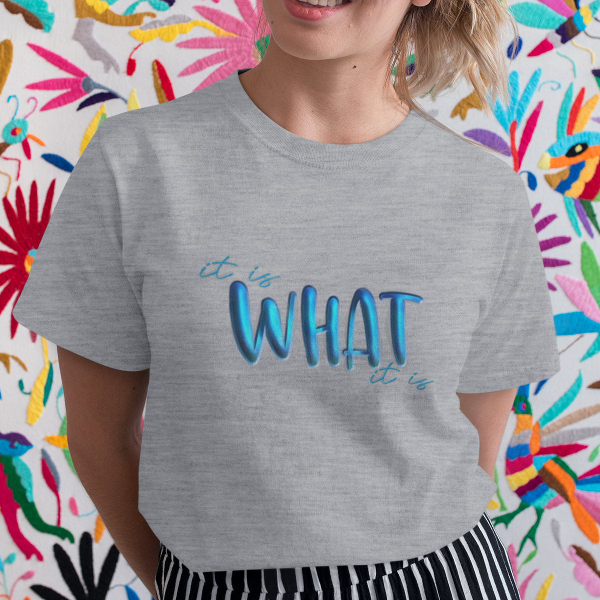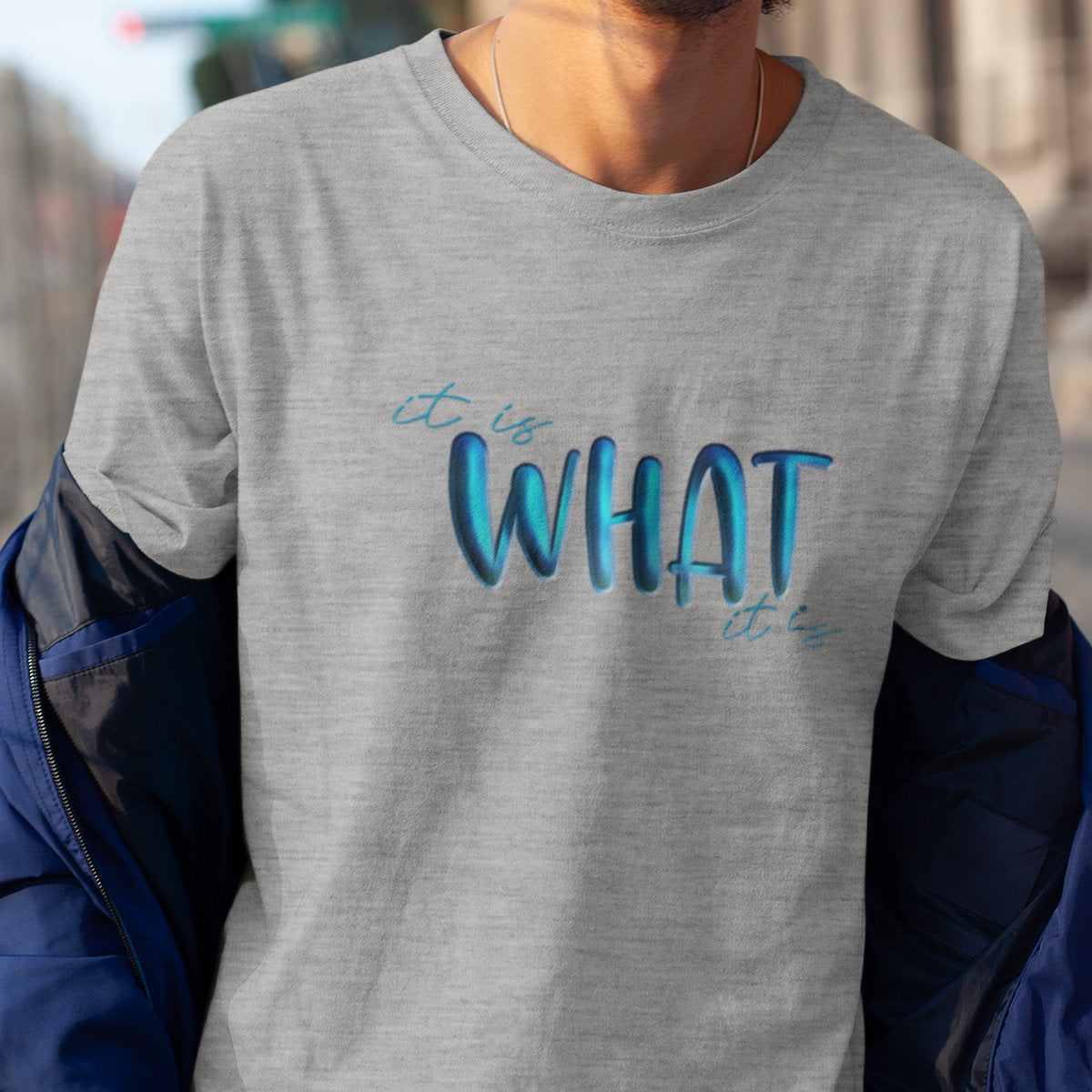 Pilki melanžiniai UNISEX marškinėliai "It is what it is"