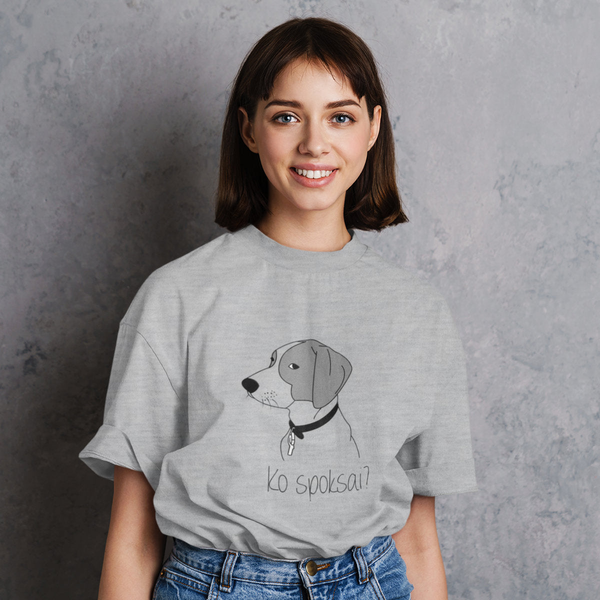 Pilki melanžiniai UNISEX marškinėliai "Ko spoksai?"