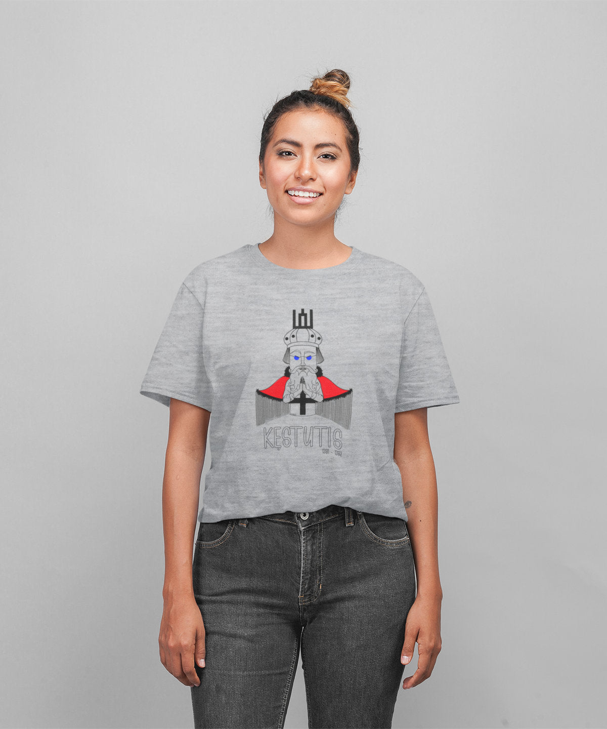 Pilki melanžiniai UNISEX marškinėliai "LDK KUNIGAIKŠTIS KĘSTUTIS SU UŽRAŠU"