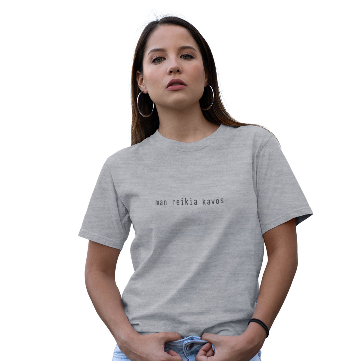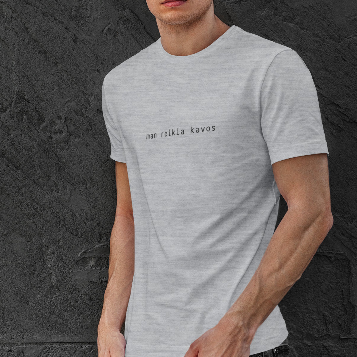 Pilki melanžiniai UNISEX marškinėliai "Man reikia kavos"