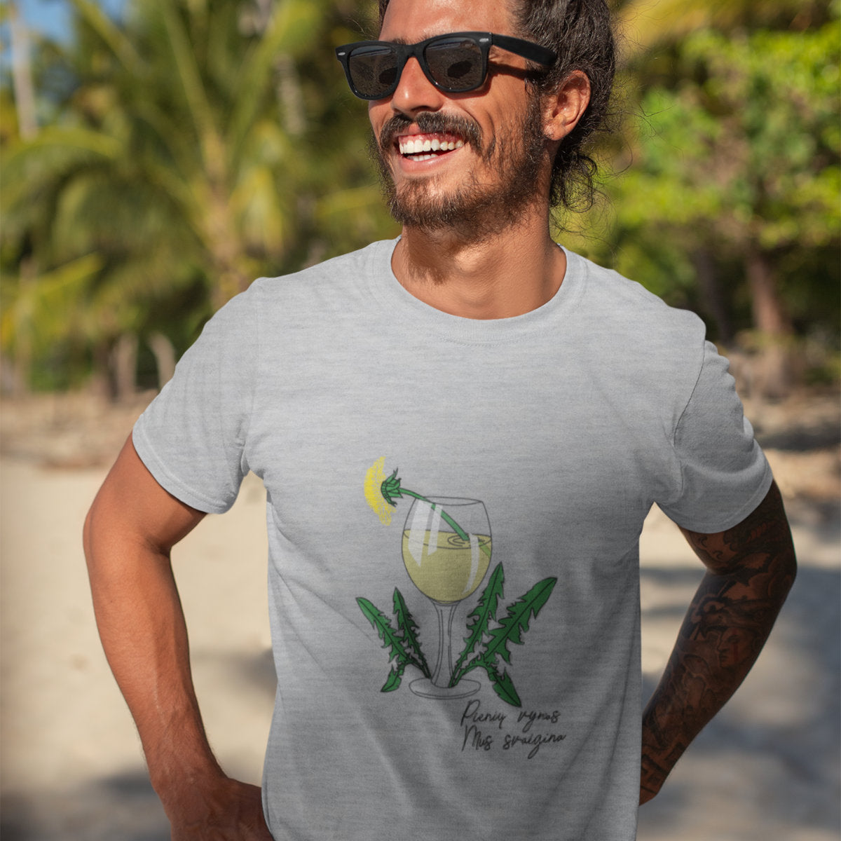 Pilki melanžiniai UNISEX marškinėliai "Pienių vynas"