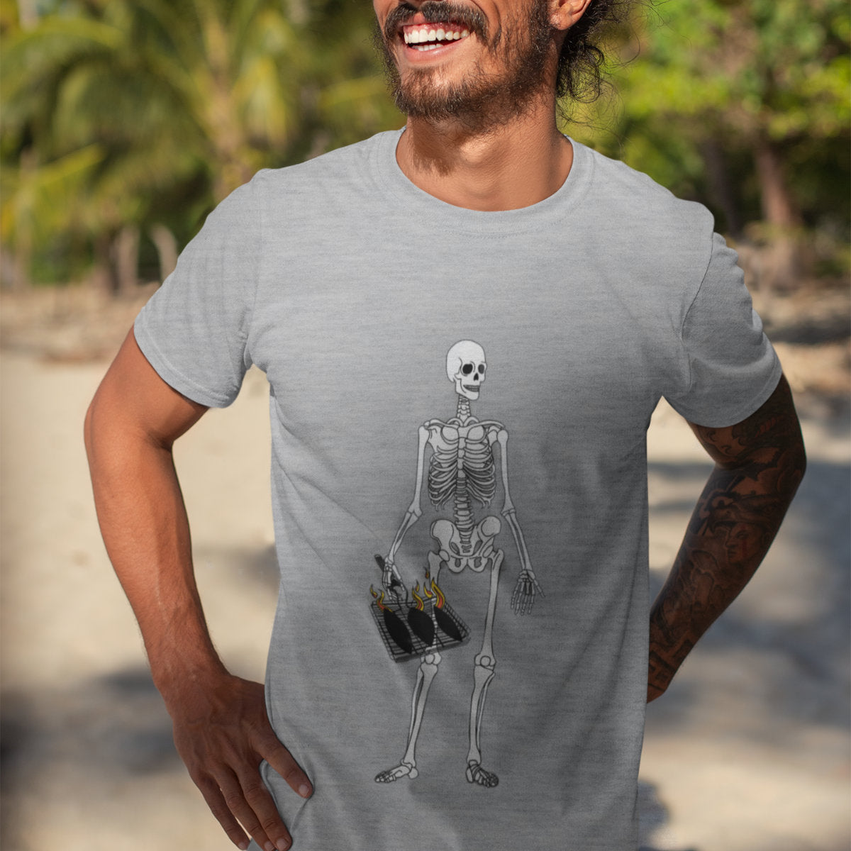 Pilki melanžiniai UNISEX marškinėliai "Skeletas grilina"
