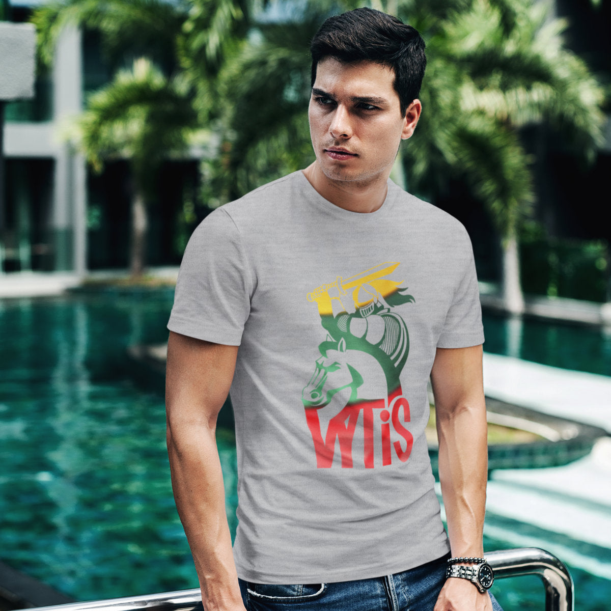 Pilki melanžiniai UNISEX marškinėliai "Spalvotas Vyčių Vytis“