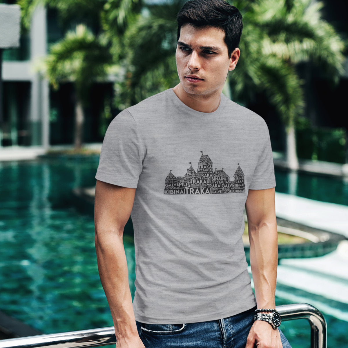 Pilki melanžiniai unisex marškinėliai "Trakų frazės"