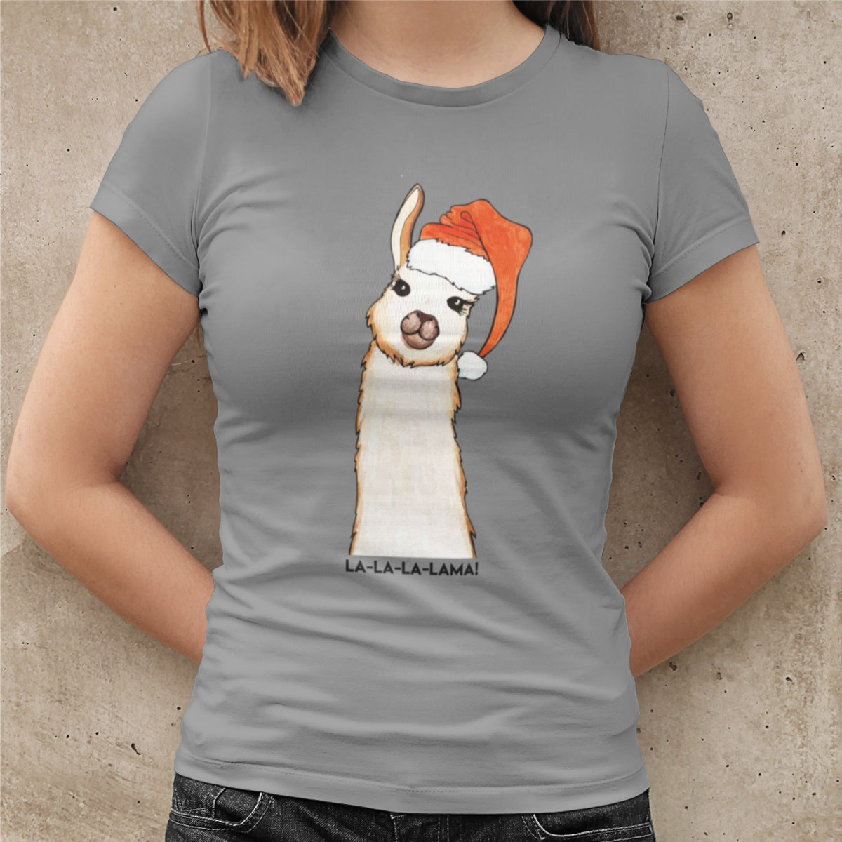 Pilki moteriški kalėdiniai marškinėliai "La la lama"