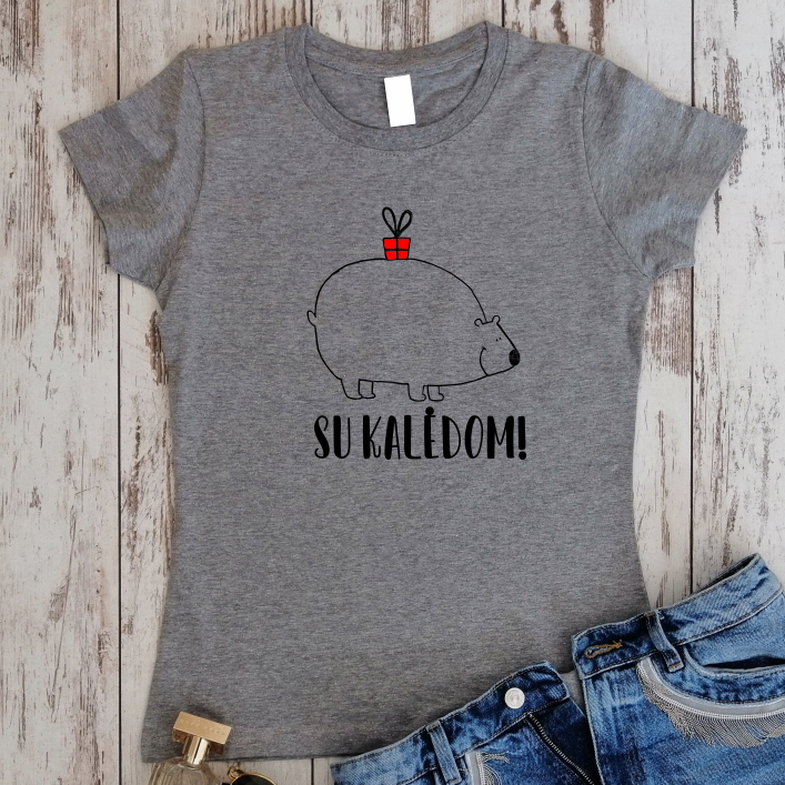Pilki moteriški marškinėliai "Baltoji meška su dovana"