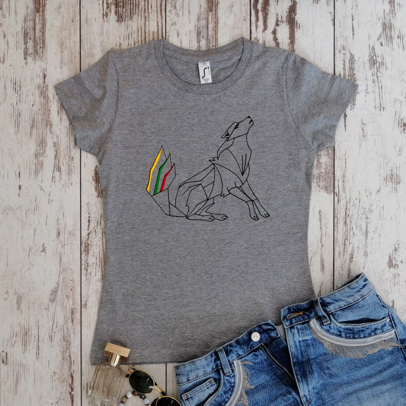 Pilki moteriški marškinėliai "Geležinio vilko kontūrai"