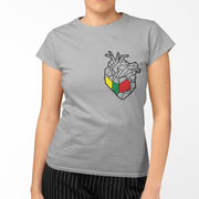 Pilki moteriški marškinėliai "Geometrinė širdis"