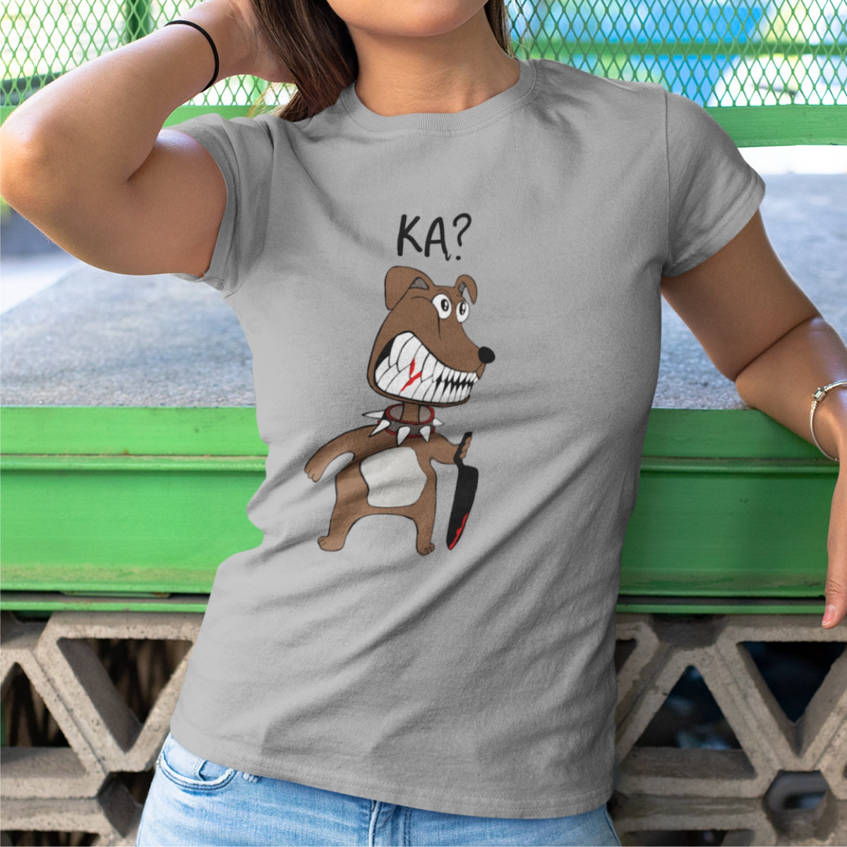 Pilki moteriški marškinėliai "Ką? Šuniukas"