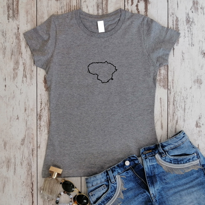 Pilki moteriški marškinėliai "Lietuvos kontūrai" Pagaminta prekė (M dydis)