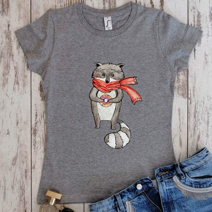 Pilki moteriški marškinėliai "Meškėnas"