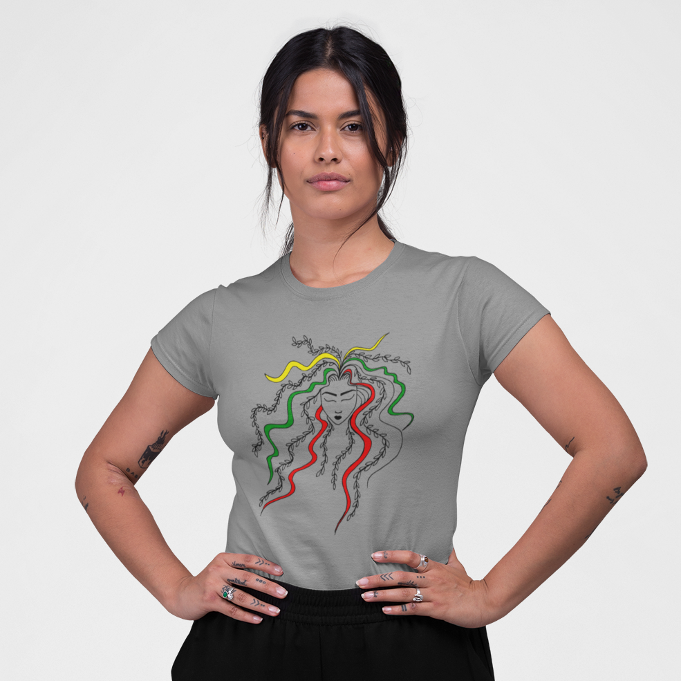 Pilki moteriški marškinėliai "Miško deivė Medeina"