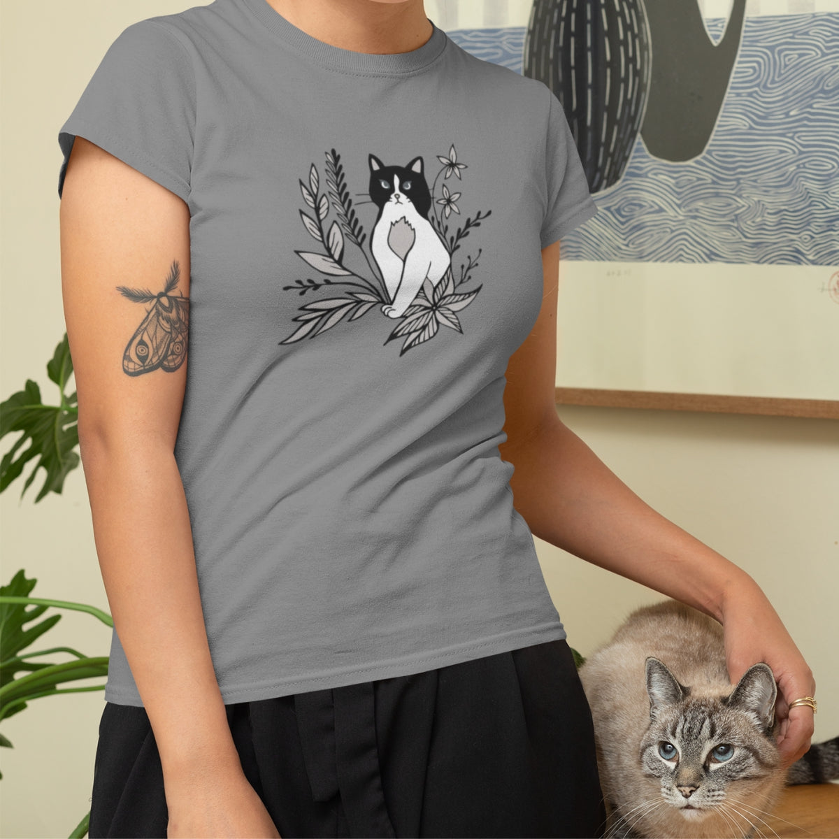 Pilki moteriški marškinėliai "Murka tarp gėlių"