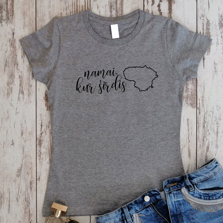 Pilki moteriški marškinėliai "Namai, kur širdis"