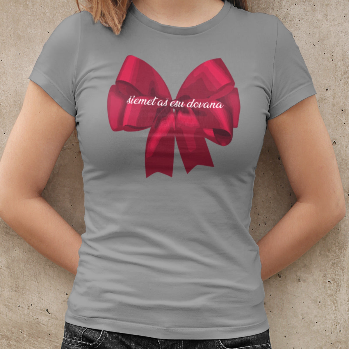 Pilki moteriški marškinėliai "Šiemet aš esu dovana"