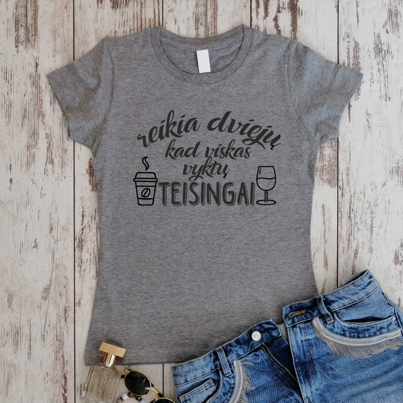 Pilki moteriški medvilniniai marškinėliai "Kava ir vynas"