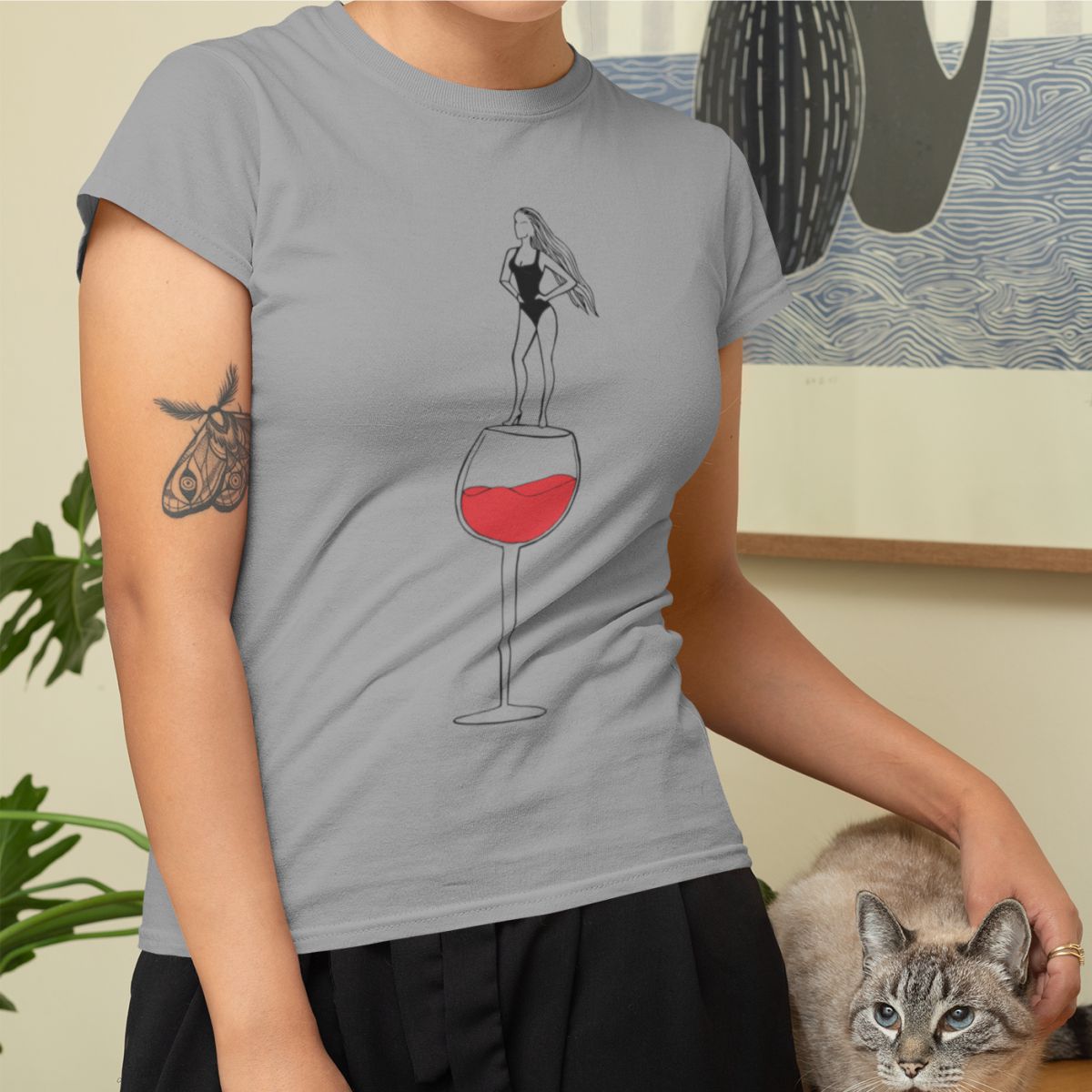 Pilki moteriški medvilniniai marškinėliai "Vyno ledi"