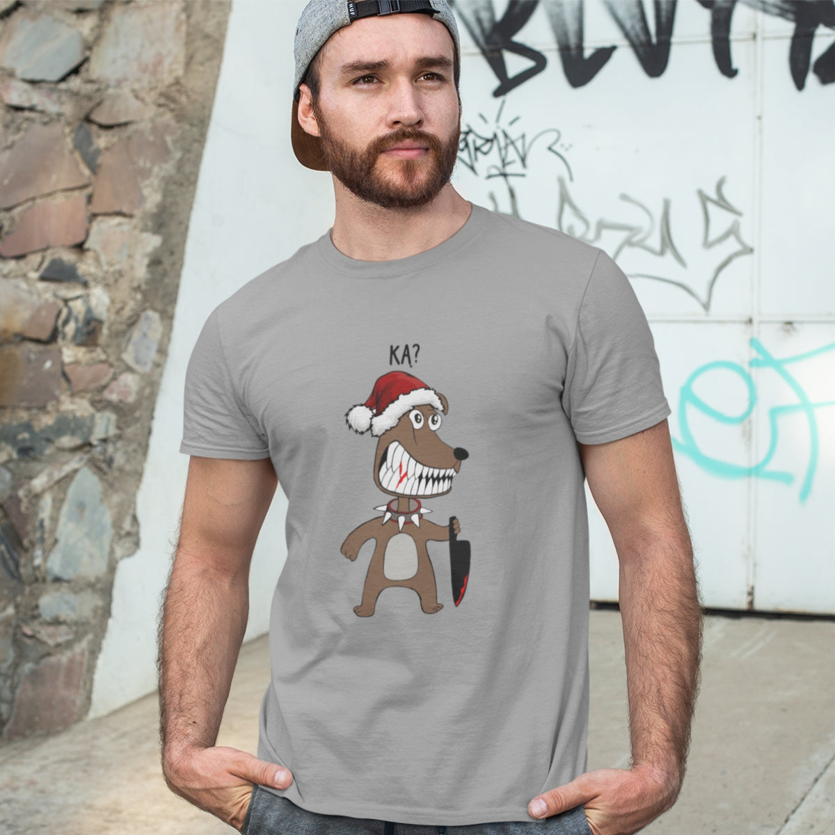 Pilki UNISEX kalėdiniai marškinėliai "Ką šuniukas Kalėdos"