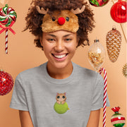 Pilki UNISEX kalėdiniai marškinėliai "Katinukas ant žaisliuko"