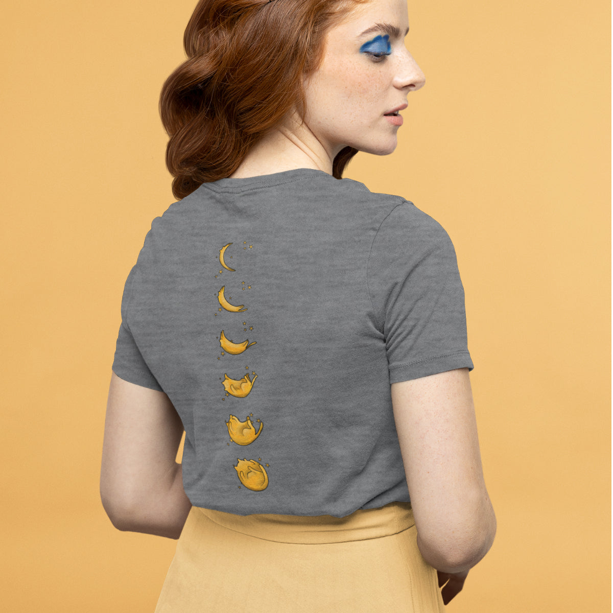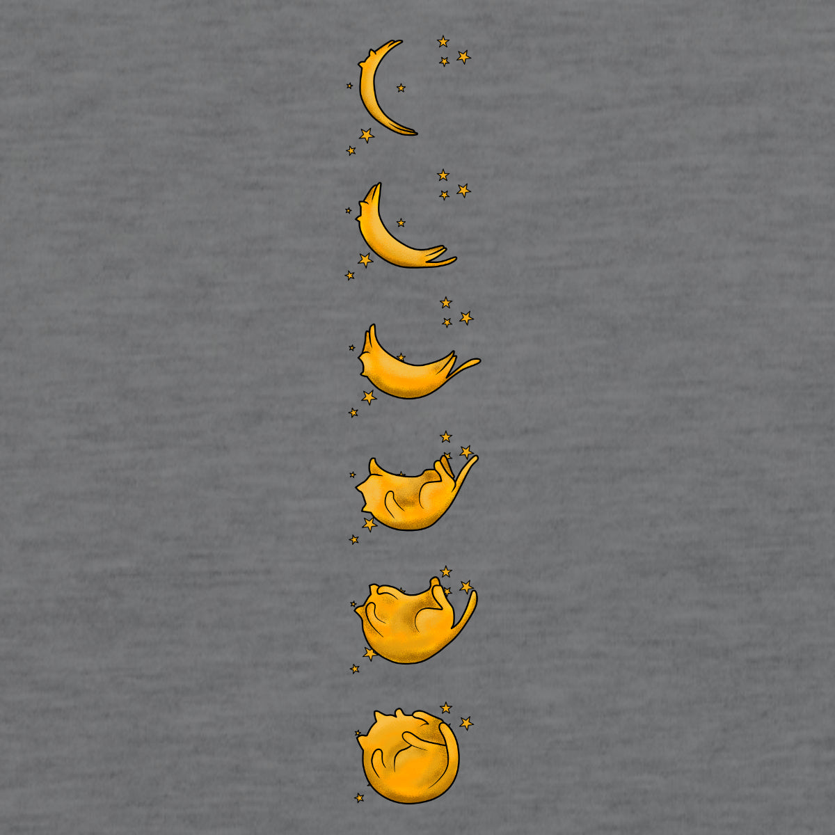 Pilki UNISEX marškinėliai su spauda ant nugaros "Katinuko fazės“