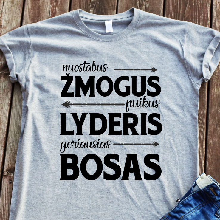 Pilki UNISEX marškinėliai "Žmogus, lyderis, bosas"