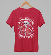 Raudoni kalėdiniai UNISEX marškinėliai "What a year"