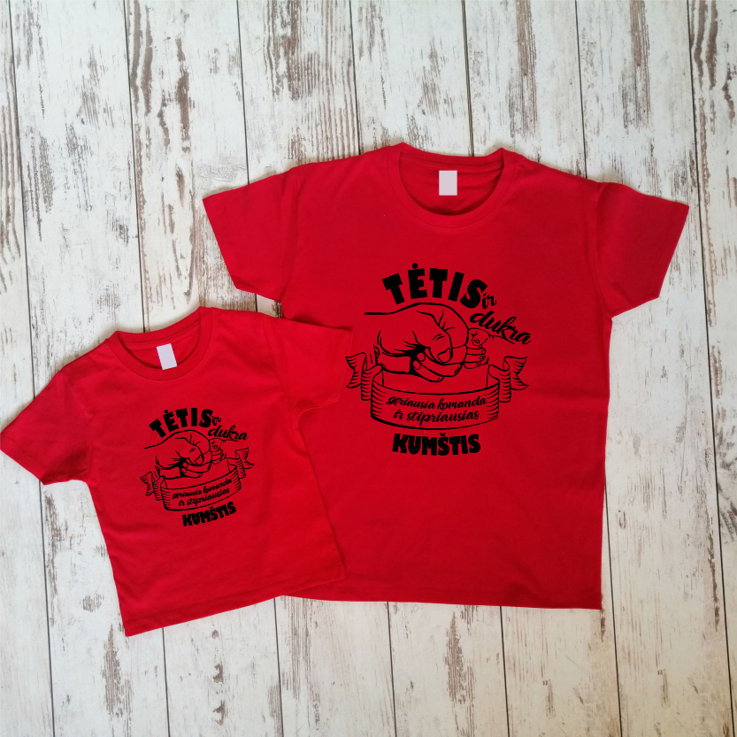 Medvilniniai marškinėliai su linksmais ir nuotaikingais piešinėliais jūsų šeimos nariams - tėveliui ir dukrytei. Nustebinkite artimus žmones, papuošdami juos išskirtinio dizaino marškinėliais! Be to, tai puiki dovana tėčio dienos proga!