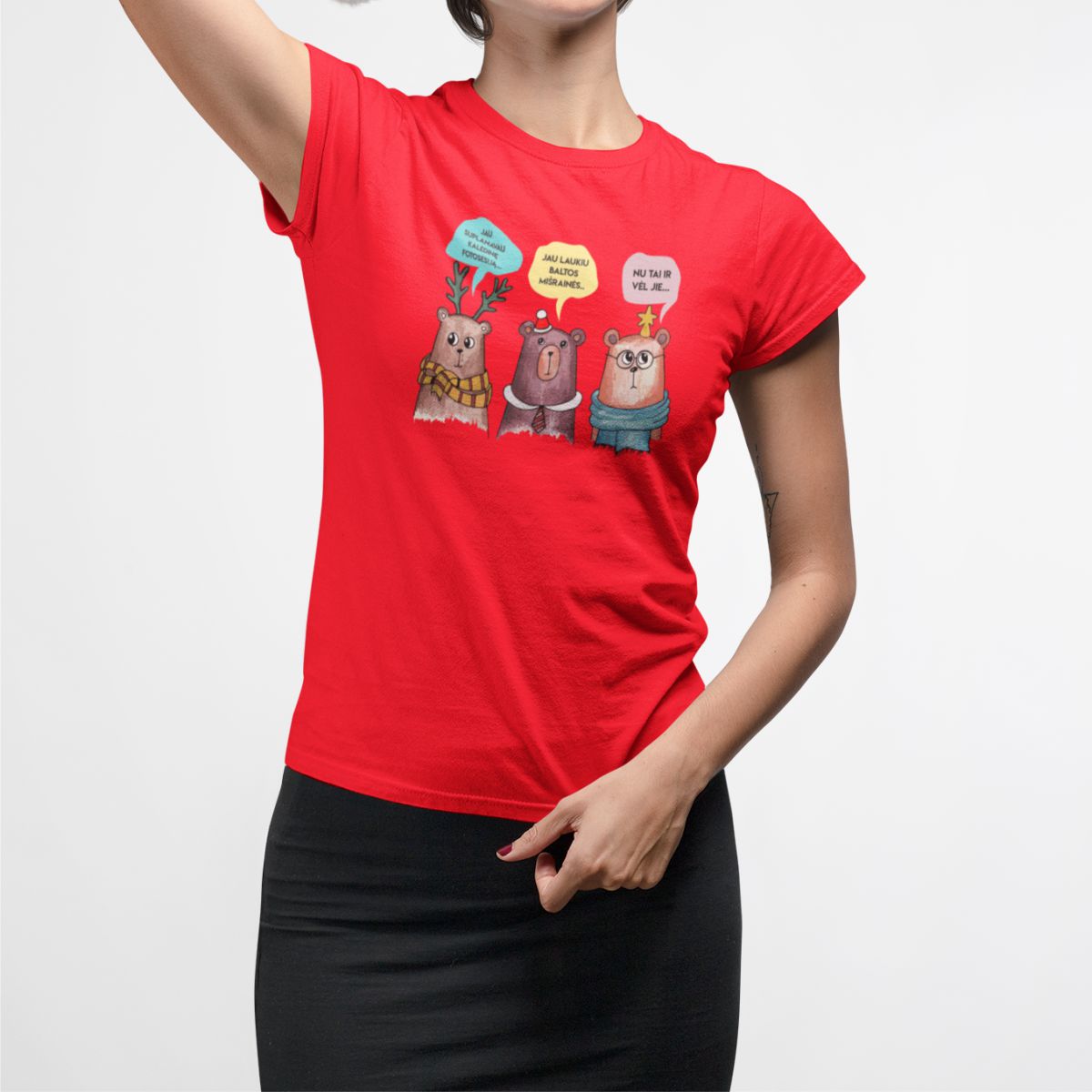 Raudoni moteriški marškinėliai "Trys meškinai"
