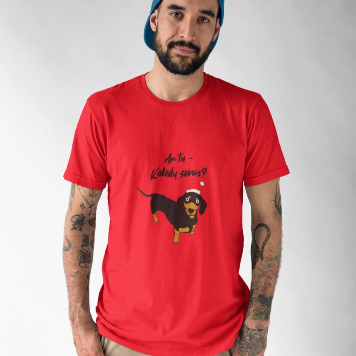 Raudoni UNISEX kalėdiniai marškinėliai "Ar tu Kalėdų senis?"