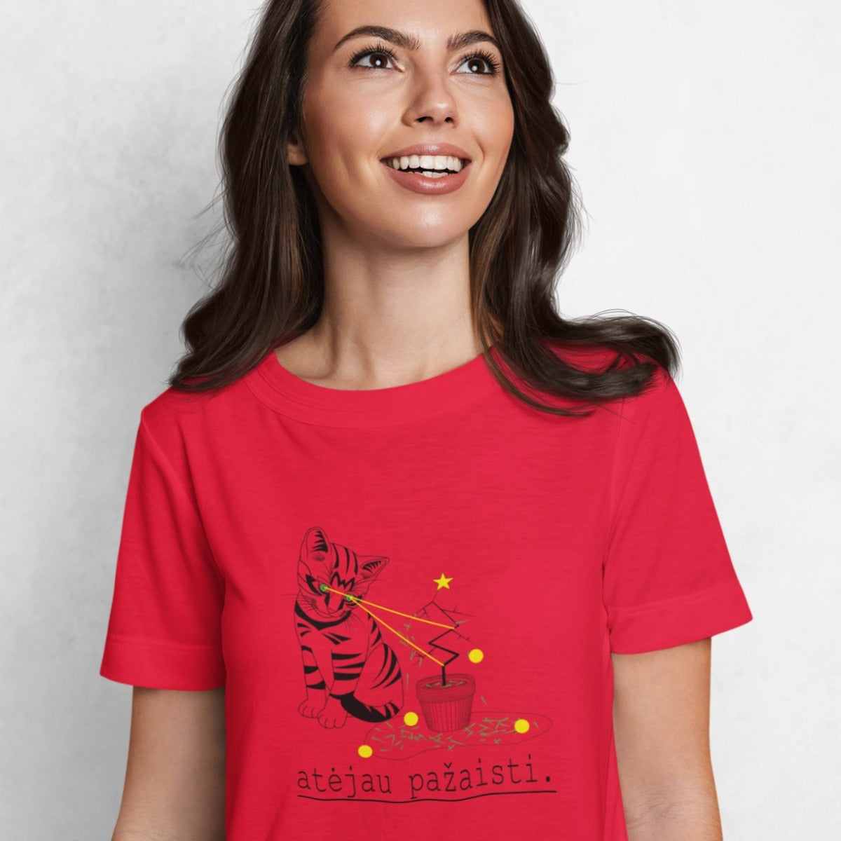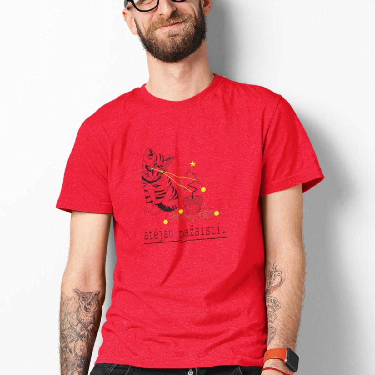 Raudoni UNISEX kalėdiniai marškinėliai "Atėjau pažaisti"