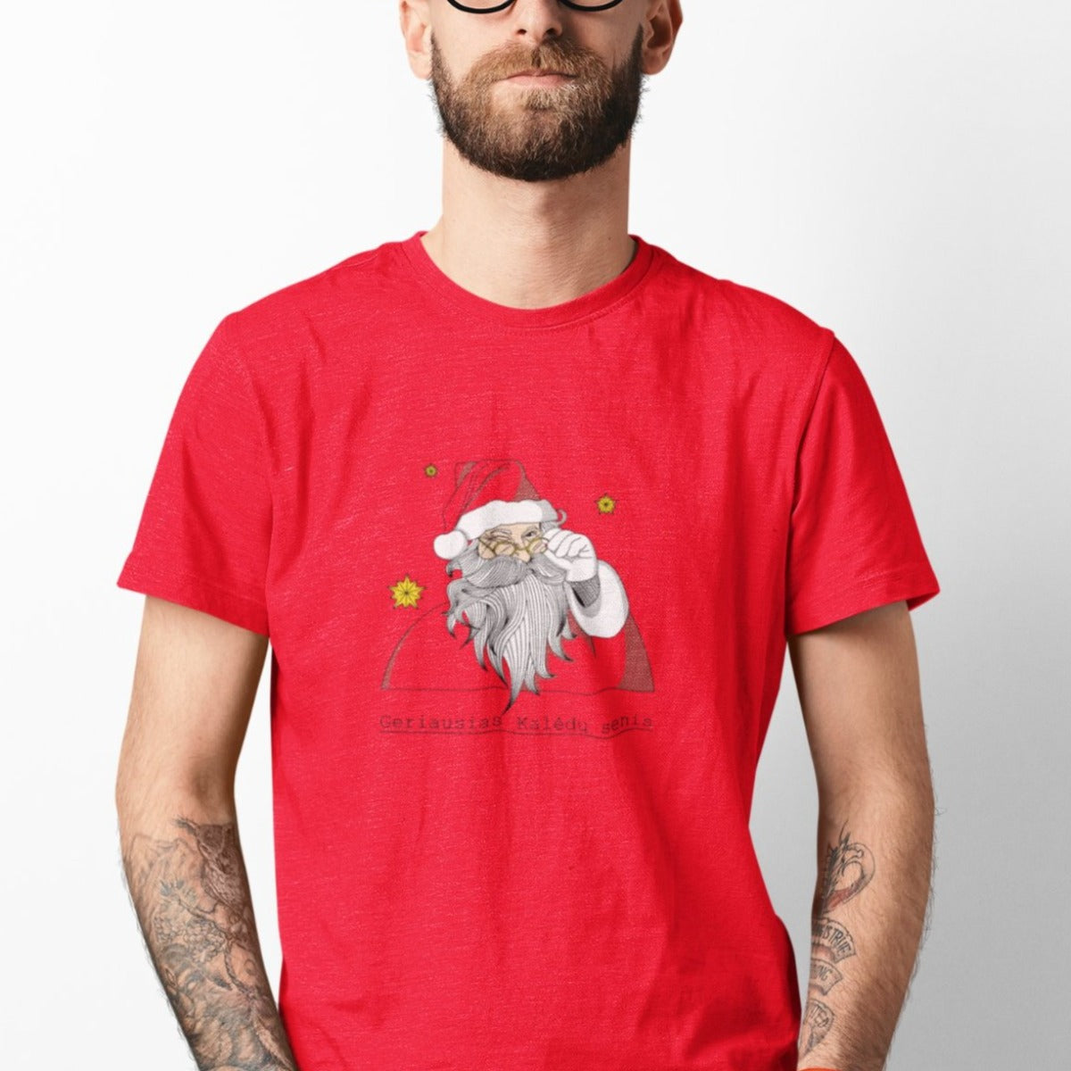 Raudoni UNISEX kalėdiniai marškinėliai "Geriausias Kalėdų senis"