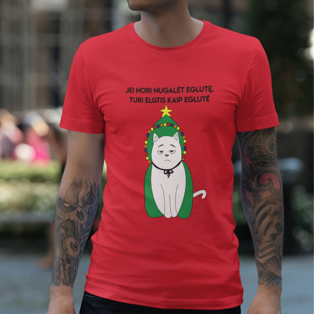 Raudoni UNISEX kalėdiniai marškinėliai "Jei nori nugalėt eglutę"
