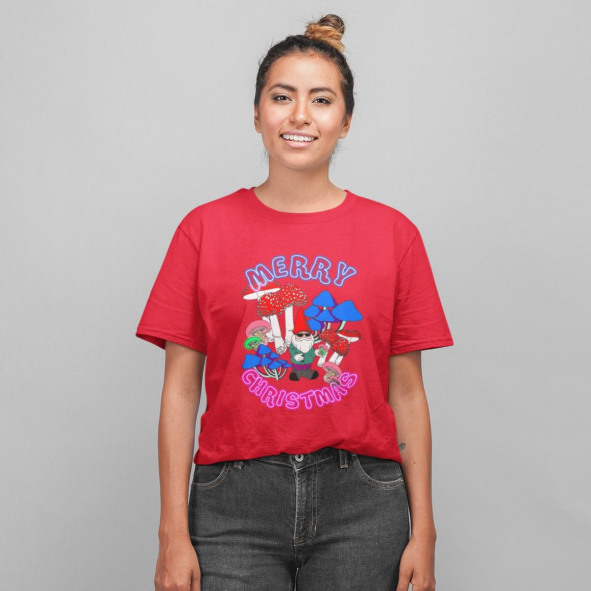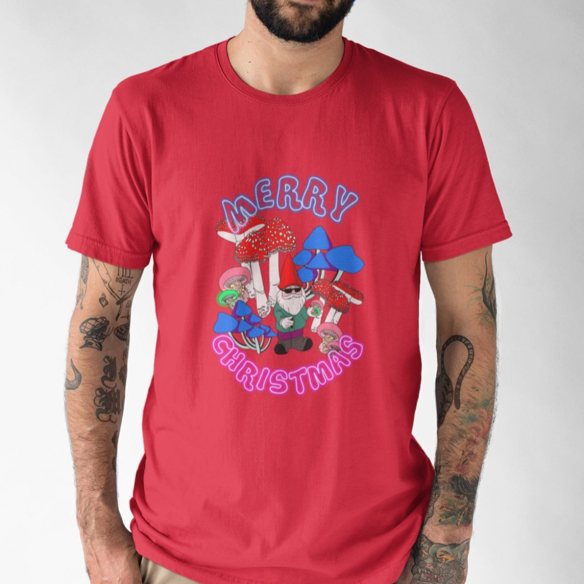 Raudoni UNISEX kalėdiniai marškinėliai "Neoninės Kalėdos"