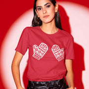 Raudoni UNISEX kalėdiniai marškinėliai "Pirštinaitės"