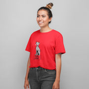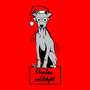 Raudoni UNISEX kalėdiniai marškinėliai "Prašau sušildyk"