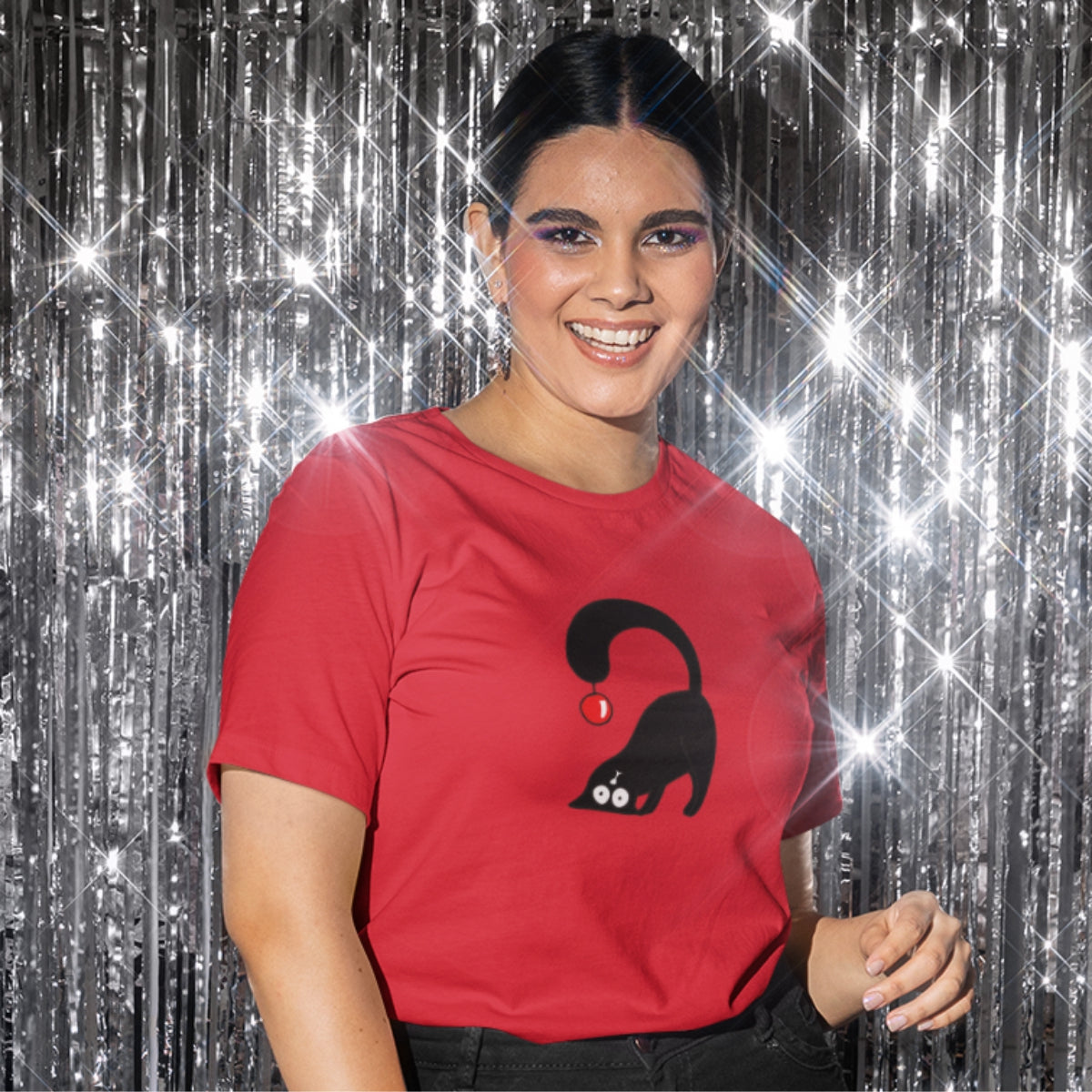 Raudoni UNISEX kalėdiniai marškinėliai "Žemyn galva"