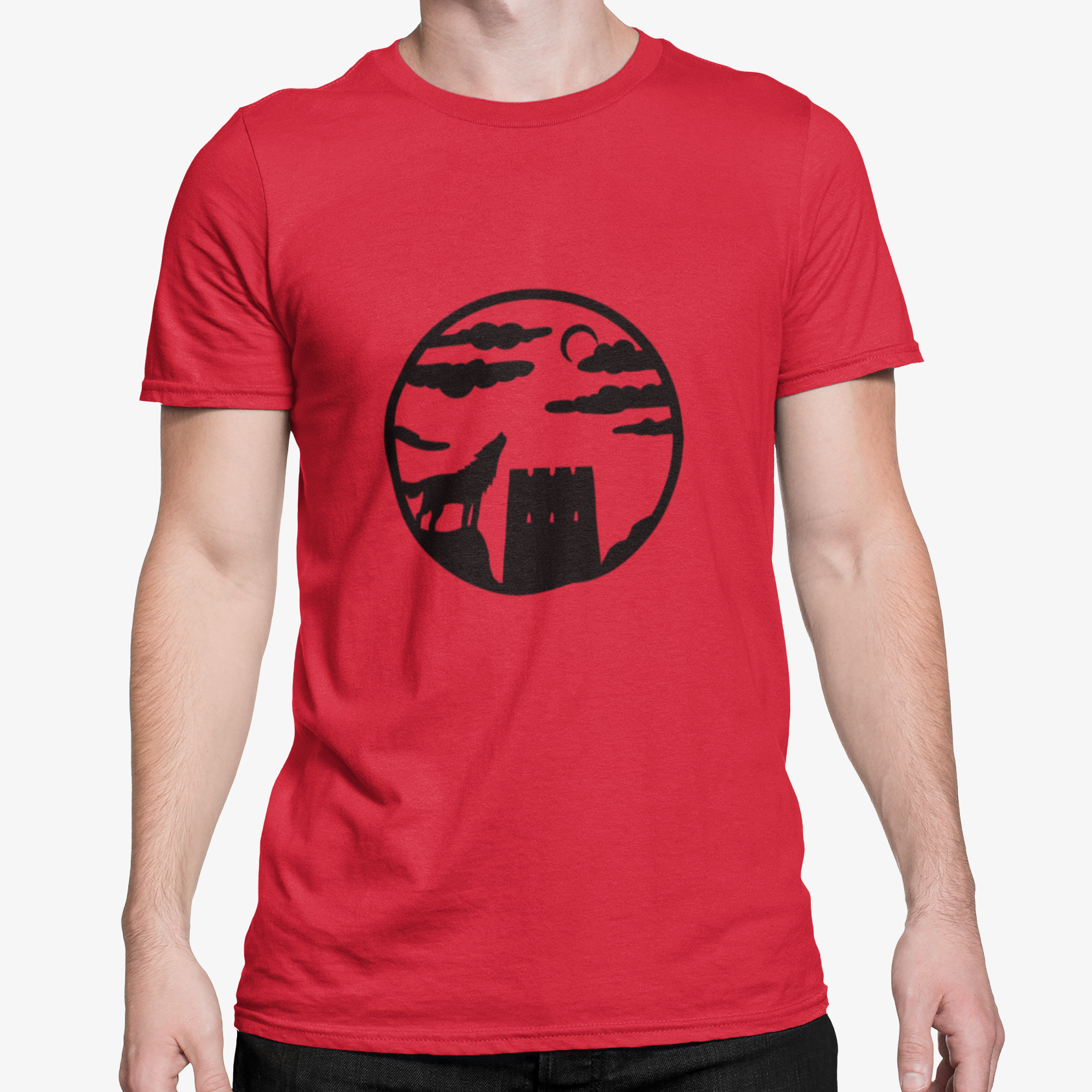 Raudoni UNISEX marškinėliai "Juodas Geležinis vilkas"