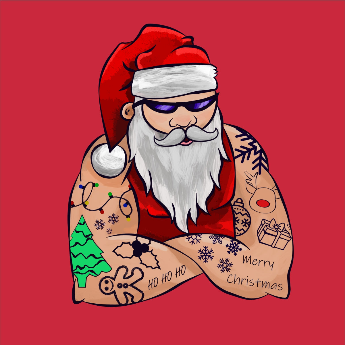 Raudoni unisex marškinėliai "Kietas Kalėdų senelis"